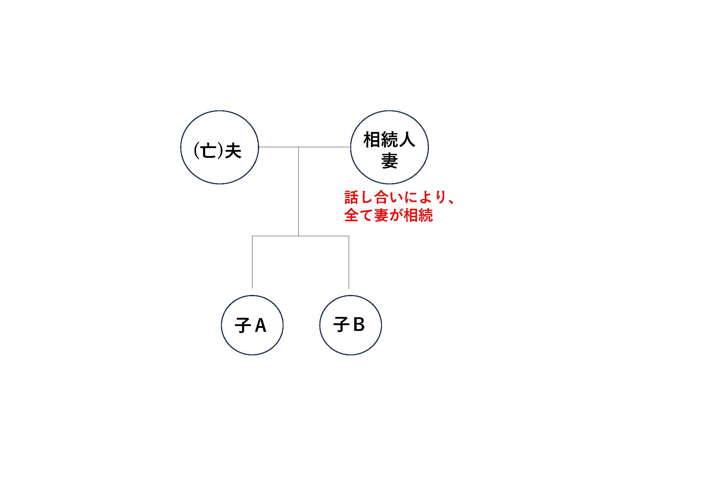 以下、被相続人である亡夫、妻、子A、子Bの4人家族を想定した場合における各相続登記のイメージ図を添付しております。