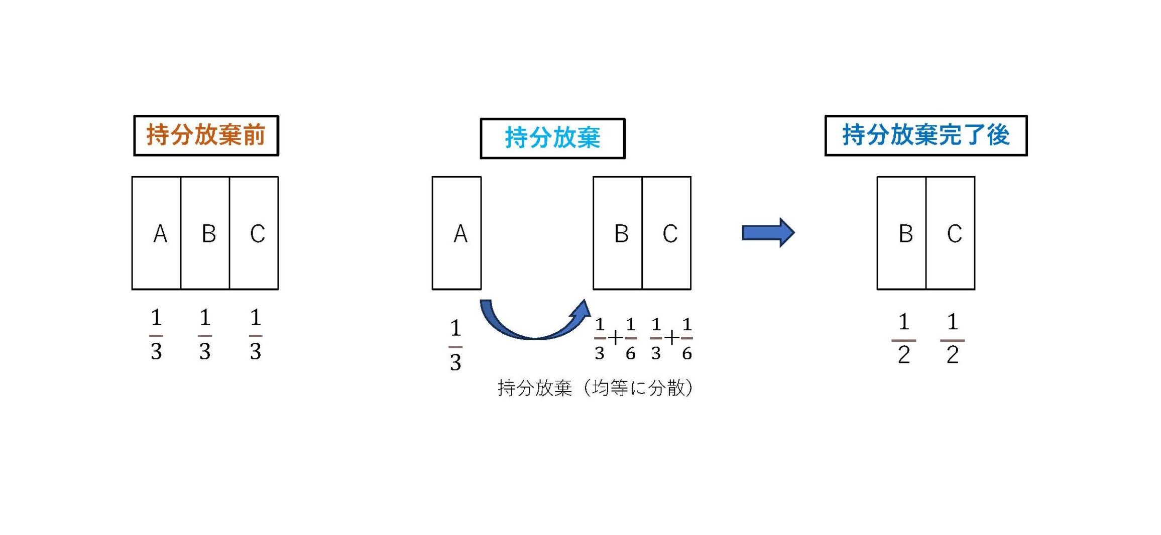 つまり、共有者のうちだれかが持分を放棄すると、その放棄された持分は他の共有者へ均等の割合で移ります。