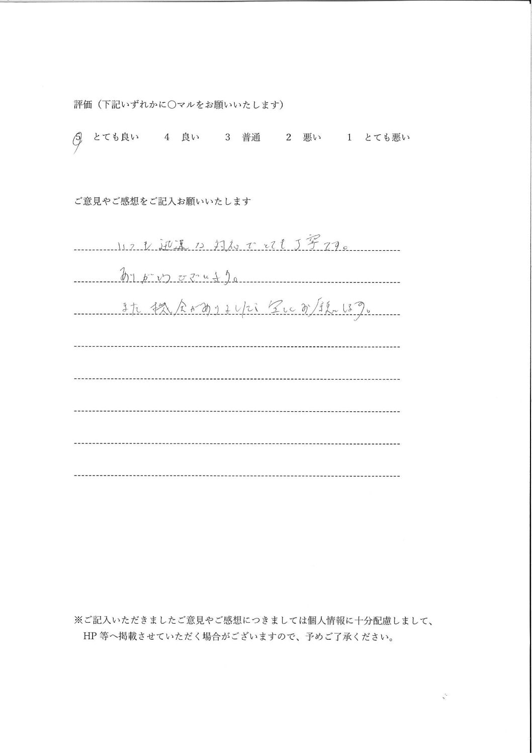 いつも迅速な対応でとても丁寧です。
